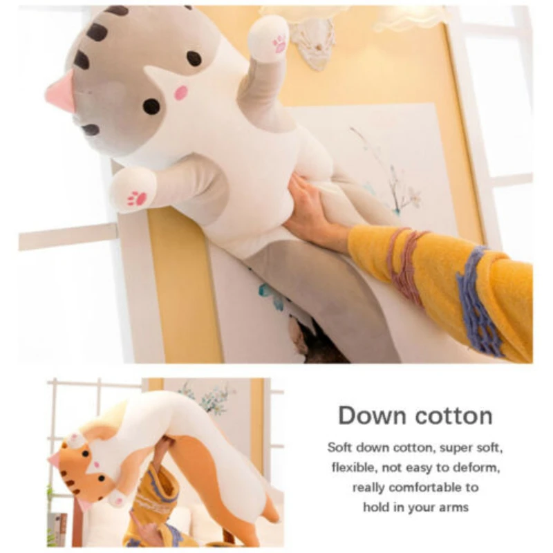 - 130cm Big Sausage Cat Plush Toys Stuffed Animals Kawaii Plushie Soft Dolls Sleep Pillow Baby Companion Birthday Gifts For Kids